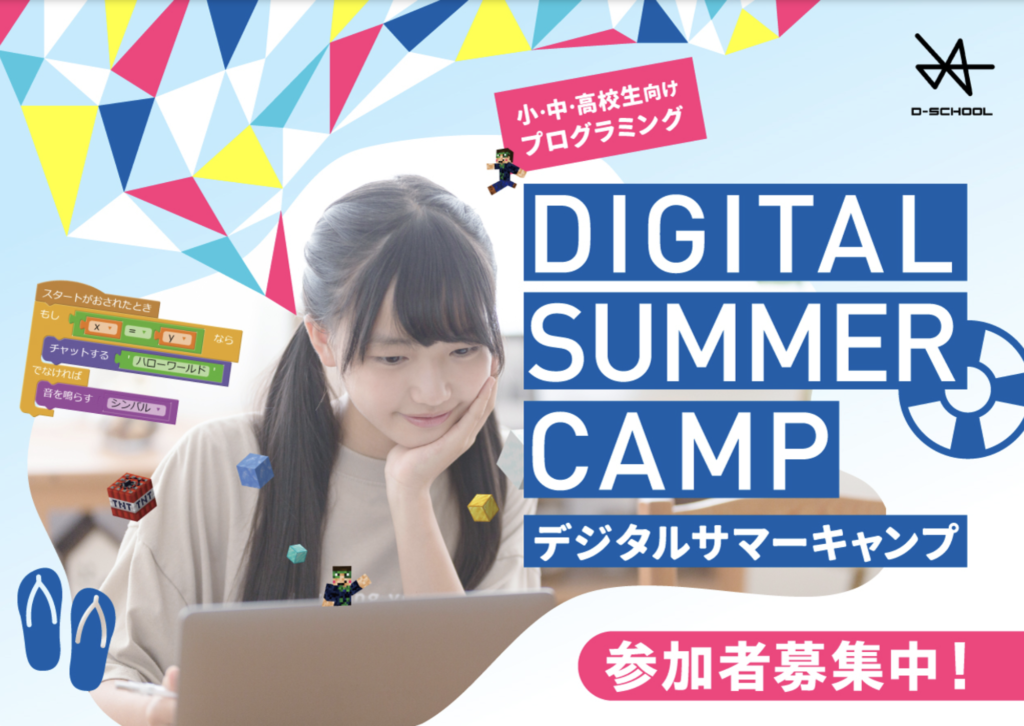 D-SCHOOLにて毎年夏休み期間中に開催しておりますプログラミング短期コース「デジタルサマーキャンプ」と「プログラミングコンテスト」の2022特設サイトを公開しました。